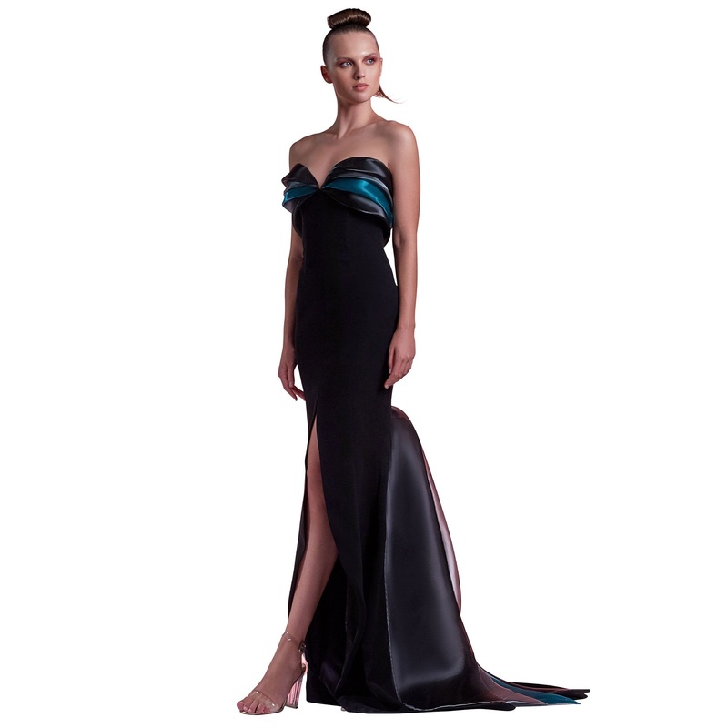 Vibrant strapless design fitted dress with horsehair hem by MNM Couture