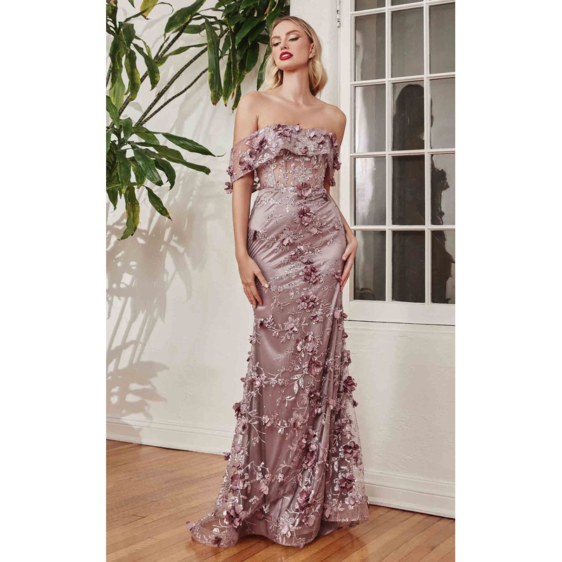 Look smart and chic with this LaDivine J832 dress. This floor-length dress features a off-shoulder straight neckline and allover glitter work. This timeless look is perfect for formal events, eveningwear, or any special occasion you may have. The timeless design ensures you will always make an impression whether it be in the boardroom or on the dancefloor.