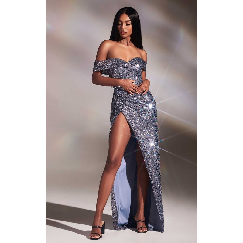 Fancy meets flirty, with a sequined twist! This CD260 sequined dress from LaDivine is here to make your fashion dreams come to life. With its fold-over sleeves, this dress adds a charming touch to your shoulders, while the gathered skirt adds volume and movement to your every step. And let`s not forget about the high slit, because showing a little leg never hurt anyone!